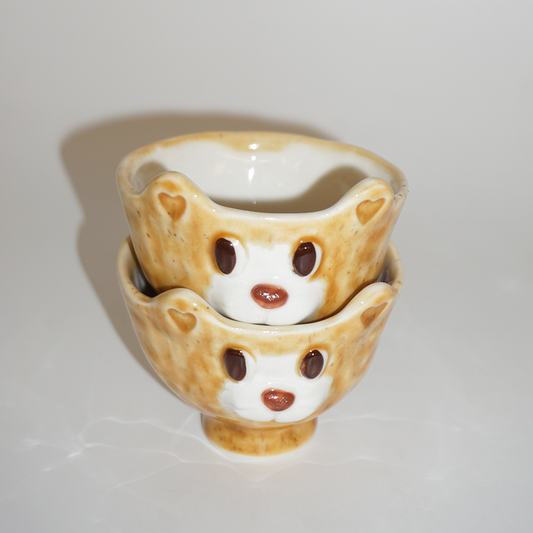 취급주의의 마스코트 녹두+바둑이 잔의 뒤를 잇는 노란 고양이 호두! 치즈 냥이를 작은 찻잔으로 표현해 제작했답니다. 모든 개체는 하나씩 손으로 조물조물 만들어지기 때문에 얼굴의 형태가 전부 미묘하게 다를 수 있습니다. 컬러는 치즈 냥이의 밝은 캐러멜 색과 작은 브라운 도트로 표현하였으며 잔의 내부는 흰색 유약으로 마무리하였습니다. 여러가지 유약으로 표현 된 컬러로, 여러가지 색의 유약이 겹쳐지면 가마 안에서 녹는 온도가 낮아져 흐름이 생길 수 있습니다. 이는 불량의 사유(교환/환불 불가)가 되지 않습니다. 모든 개체는 동일하게 제작 되지만 미묘하게 다를 수 있다는 점 미리 알려드립니다.